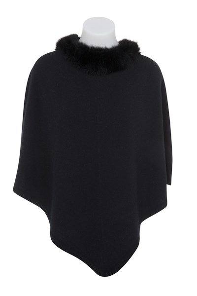 Possum Merino Fur Trim Zip Poncho