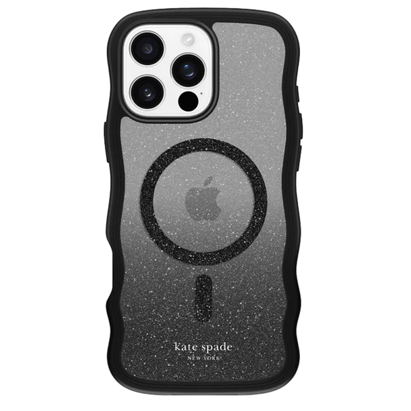 The kate spade new york Wavy MagSafe Phone Case adds a fun touch to your mirror selfies with a unique wavy design and black glitter ombré! This phone case is made to keep up with your daily to-do list thanks to 12-foot drop protection, while built-in magnets let you wirelessly charge and accessorize in a snap.