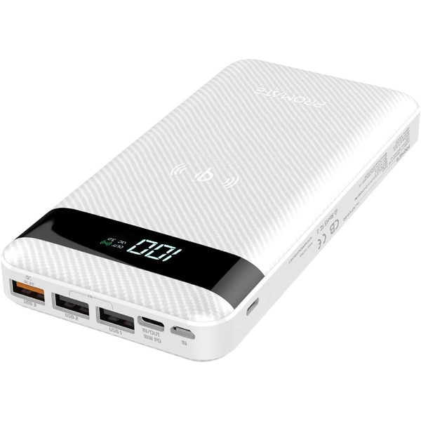 Promate AURATANK-20.WHT 20000mAh Wireless Charging Power Bank - White