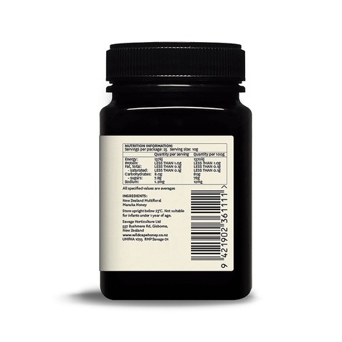 WildCape MGO 115+ Multifloral Manuka Honey contains at least 115 mg/kg of Methylglyoxal (MGO).