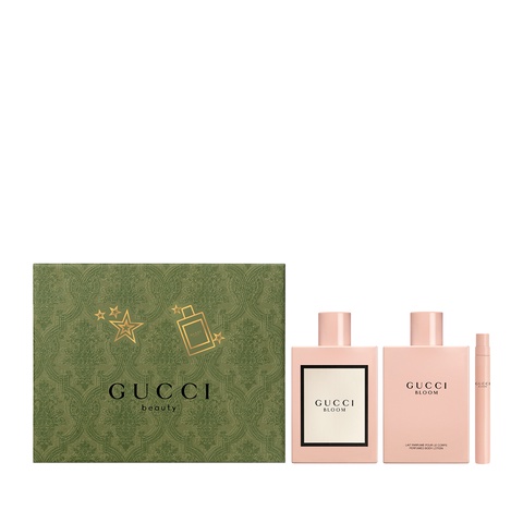 This set contains: 100ml/3.3oz Gucci Bloom Eau de Parfum, 100ml/3.3oz Gucci Bloom Perfumed Body Lotion, 10ml/0.33oz Gucci Bloom Eau de Parfum Pen Spray