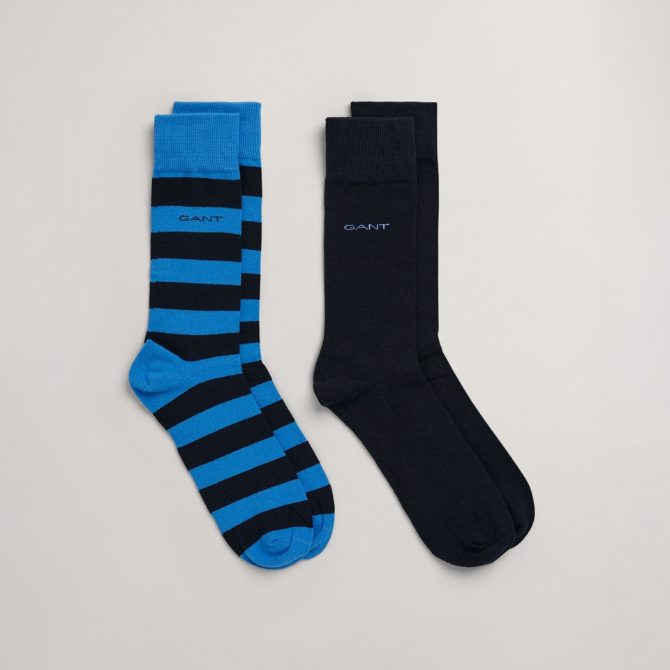 Add a sporty touch to your outfits with these 2-pack socks featuring a classic barstripe design alongside a classic solid colorway. Made of combed cotton, they are designed with a double welt hem and a GANT logo at the ankle.
