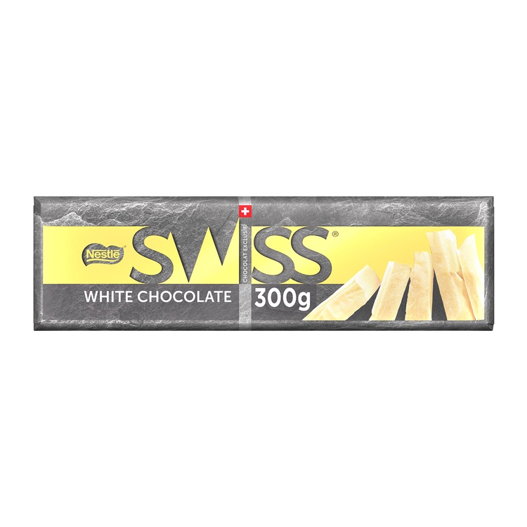 Experience an adventure to remember with the irresistible NESTLE SWISS White Chocolate Tablet. An artisanal inspired bar of premium white chocolate, delectably creamy with every bite. Surprise family and friends with this deliciously authentic NESTLE SWISS chocolate experience. A generously chunky bar inspired by the Swiss mountains - let it inspire your next adventure. Expertly crafted using authentic Swiss milk, and 100% certified sustainable cocoa beans sourced through the NESTLE COCOA PLAN. Exclusive to travel retail.
