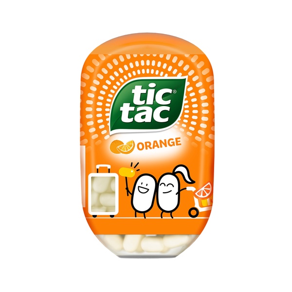 The Tic Tac Bottle organe, shaped like a ultra-large Tic Tac, contains 200 orange flavoured pills to satisfy even the long haul traveler. It's easy to carry and fun to share!