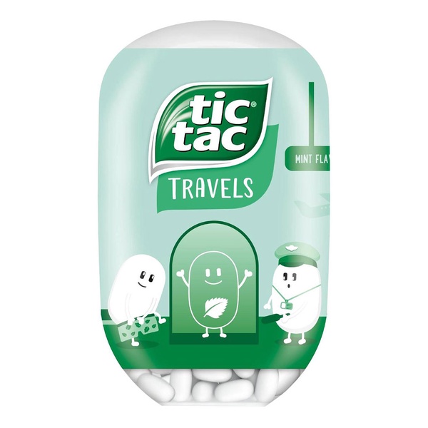 Easy to carry and fun to share! Tic Tac® Bottle – shaped like a ultra-large Tic Tac® - contains 200 Mint flavored pills to satisfy even the long haul traveler.
