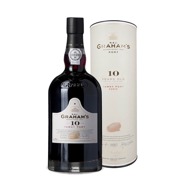 This aged tawny port is a blend of older wines, which offer complexity and younger wines, which bring fresh fruit flavors and vibrancy. graham's is known for its rich, elegant house style. this 10 year has a full, nutty bouquet, the classic graham's richness and a soft lingering finish. 20% alc/vol.