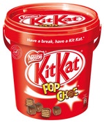 Discover the kitkat pop choc in a form that's convenient to snack. contains sugar, cocoa butter, wheat flour, whole milk powder, palm fat, cereals 5% (rice flour, sugar, wheat gluten, palm oil, wheat malt, salt), cocoa mass, lactose and proteins from whey (from milk), whey powder (from milk), butterfat (from milk), glazing agents (gum arabic, shellac), emulsifier (sunflower lecithin), flavouring, salt, raising agent (sodium bicarbonate), vegetable oils (coconut, palm kernel), glucose syrup. allergens: contains milk, soya, gluten (wheat).