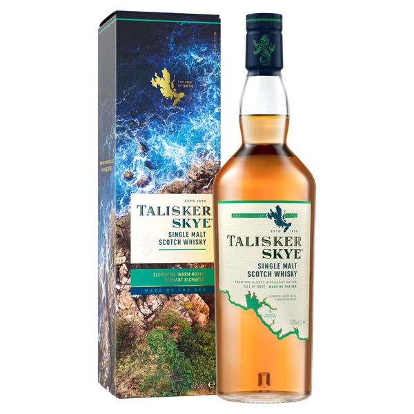 Talisker Skye is the latest release from the windswept distillery on the Isle of Skye. Tasting notes:The liquid has been made from a combination of toasted and refill American oak casks to accentuate the citrus and sweeter notes of Talisker, whilst delivering the gentle smoky and salty flavours that are so unique to whiskies from the distillery.