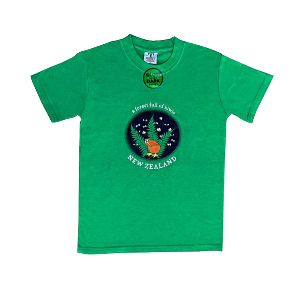 Prokiwi Childrens T-Shirt Forest Of Kiwis Jade