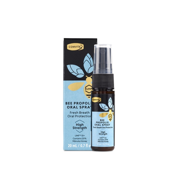 Ingredients:Support your Oral hygiene with Comvita Propolis Oral Spray High Strength. A natural, bee propolis Oral spray that helps fight odor causing bacteria, hydrates and freshens the mouth. Contains 20% manuka honey (UMF12+) for extra immune boosting antioxidants to strengthen your natural defenses.