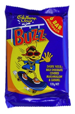 Buzz bar – the predecessor of the pinky bar: soft, fluffy marshmallow topped with caramel and covered in cadbury dairy milk milk chocolate.