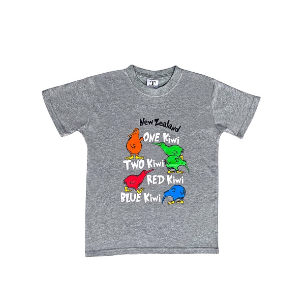 Prokiwi Childrens T-Shirt One Kiwi Two Kiwi Grey Marl