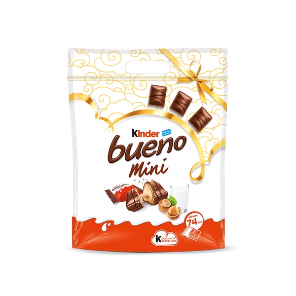 Kinder Bueno Mini bites is a travel pouch and indulgent treat with a unique combination of haselnut filling and milk chocolate wrapping to be enjoyed.
