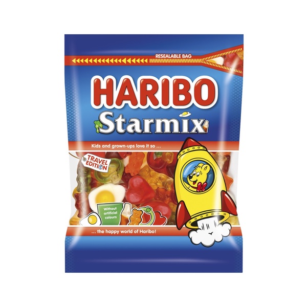 Haribo Starmix is loved for its iconic mix of shapes - everyone has their favourite, whether that?s a heart, a ring, a cola bottle, an egg or a goldbear. HARIBO Starmix has something for everyone, with its range of jelly and foam sweets. Including orange, lemon, raspberry, pineapple and cola flavours.