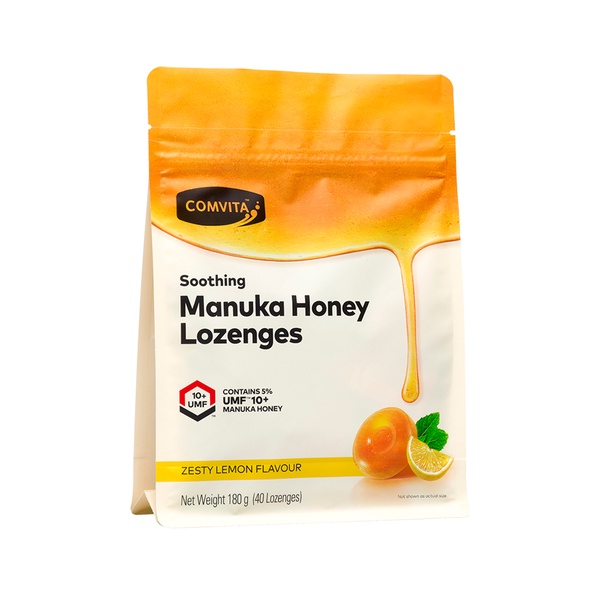 Soothing lozenges, made with 5% UMF™ 10+ Mānuka honey lozenges to soothe sore throats and bee propolis, known for its natural immunity protection. Individually wrapped and in a resealable bag - these are ideal for travelling with.