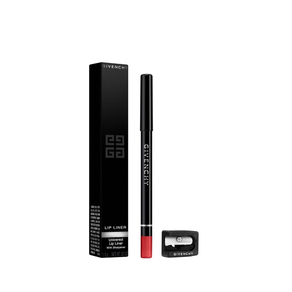 For strong, beautiful lips with a sculpted shape and increased volume. Both a base and a filler for tiny lines, the waterproof formula increases volume and intensity and prevents feathering at the lip edge. A palette of 10 colors matches the Givenchy lipstick range. For greater versatility, the Universal liner works with any shade. Carnauba and Candelilla wax ensure that the supple, creamy formula glides easily onto the lips. The sleek black pencil is packaged with a sharpener.