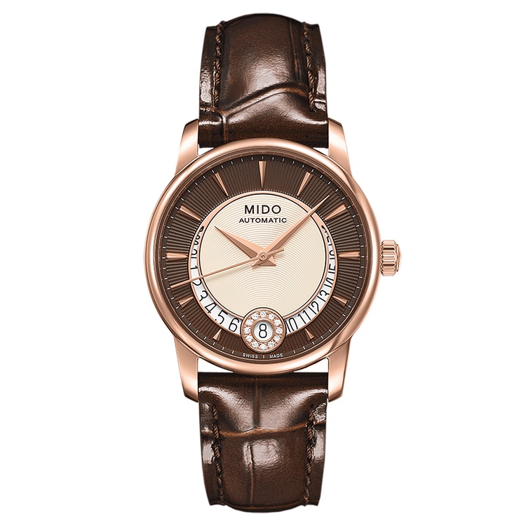 Mido Baroncelli Diamonds Rose Gold/Brown Leather Women's Watch