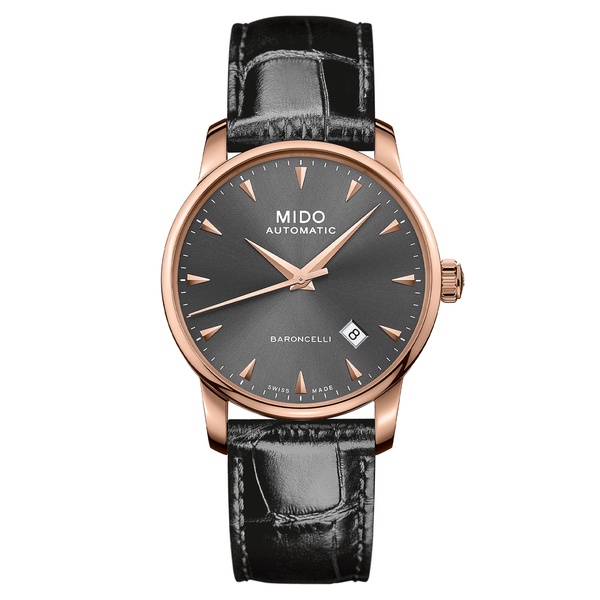 Mido Baroncelli Tradtion Rose Gold/Black Leather Men's Watch