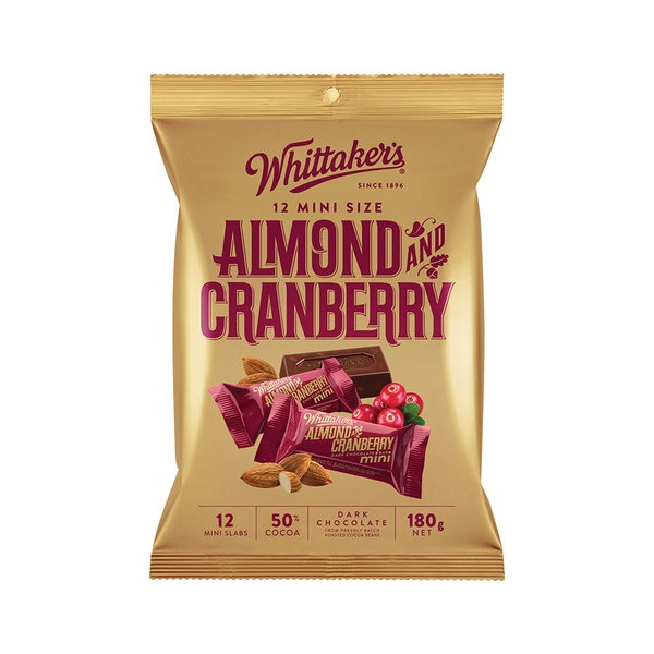 Whittaker's Almond & Cranberry Chocolate Mini Slabs 180g
