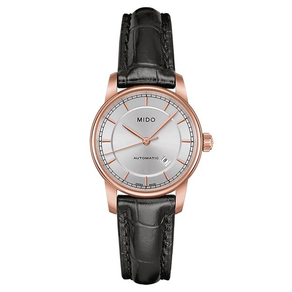 Mido Baroncelli Tradtion Rose Gold/Black Leather Women's Watch