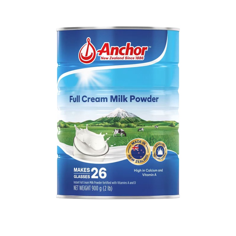 Anchor Full Cream Milk Powder is the same delicious fresh milk, dried, so you can make up what you need, when you need it. One 900g pack makes 26 glasses of full cream milk. Contains full cream milk, as well as vitamins A & D.