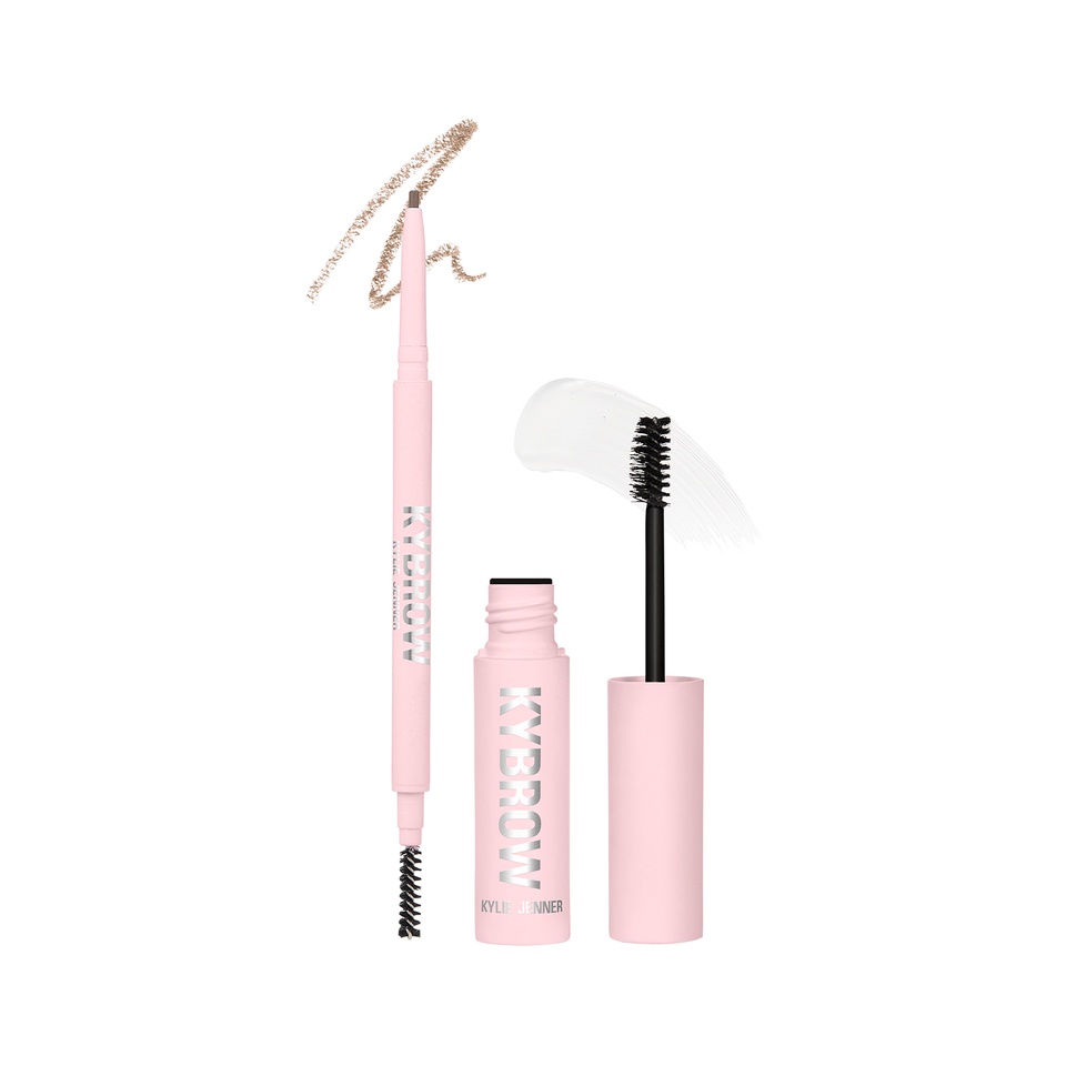 Why it's special: My Kylie Cosmetics Kybrow Kit is my perfect brow routine in one ready-to-go kit. Available in multiple shades to suit a wide variety of hair colors, this essential kit contains one Brow Pencil and one universal clear Brow Gel. Use my Brow Pencil to shape, style and fill in brows, then follow with my Brow Gel to lock in brow color and hold brow hairs in place all day long. Tell me more: The Kylie Cosmetics Kybrow Kit is an all-in-one kit featuring one full-size Brow Pencil and one full-size Brow Gel.• Shape and fill with the Brow Pencil: Features a double-ended design: a fine tip to draw ultra-precise “hair-like” strokes and perfectly fill and reshape brows; and a built-in soft spoolie to perfectly comb brow hairs and style them in place, while blending the texture for a natural-looking finish. Formulated with brow-loving ingredients: Ginseng extract & Shea Butter.• Comb and set with the Brow Gel: Use alone for a clean and natural look, or apply over any color to set it in place with extreme holding power. This imperceptible formula dries quickly to leave behind a flexible, comfortable film that stays put with long-lasting definition. The “Load & Sculpt” brush is dual-sided: longer bristles easily comb through brow hairs, distributing the product evenly from root to tip, while shorter bristles sculpt and shape them into place.