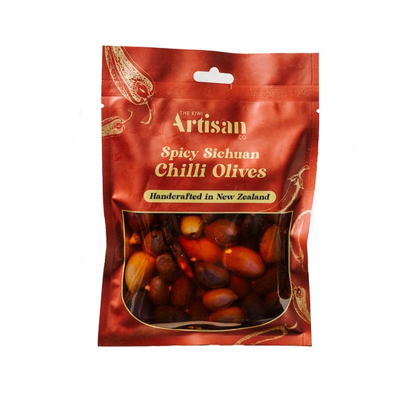 Ingredients: Kalamata olives, black olives, green olives, canola oil, chilli, spices, garlic, ginger, spring onion (olives drained from brine containing; water, salt, vinegar, olive oil).
