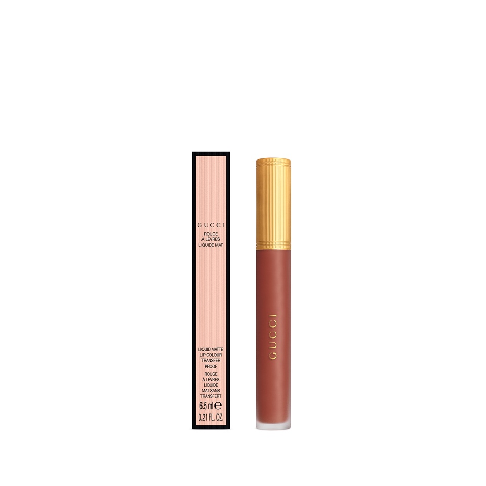 For lips that hypnotise. Rouge À Lèvres Liquide Mat is a transformative cream to powder Gucci liquid lipstick with a transfer proof soft matte finish. Highly pigmented, the array of vibrant, sunset shades provide optimal coverage and striking colour, without the worry of it settling into lip lines, smudging or feathering, even on fabric. Created with comfort in mind, the colour feels entirely weightless on the lips. Formulated with a caring combination of Black Rose oil and Hyaluronic Acid, and an infusion of Vitamin E, Rouge À Lèvres Liquide Mat Gucci lipstick smooths and cares for the lips. With a completely weightless texture, the highly pigmented colour is initially liquid and creamy before transforming to a powdery matte texture for a lightweight feeling. A soft and slanted applicator ensures the lipstick glides easily on. Entirely transfer proof, it is a matte lipstick designed with the freedom to build and blend, whether the desired look is a soft blur or a defined finish.