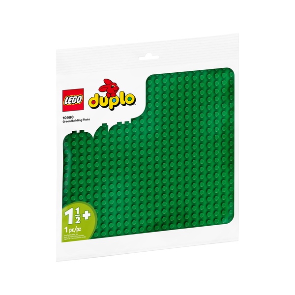 Measuring over 15 in. (38cm) square, the LEGO® DUPLO® Green Building Plate (10980) provides the ideal landscape for kids aged 18 months and up to build on, play with and display their wonderful creations. This 24x24-stud green baseplate is the ideal starting place for little builders. It holds bricks firmly at any angle (even upside down!), opening up an endless world of imaginative play possibilities – from grassy gardens to exotic jungles, steep mountainsides to cool, green, flying machines. And, when the building stops, the firm baseplate provides a collapse-free way to transport and display kids’ handiwork.