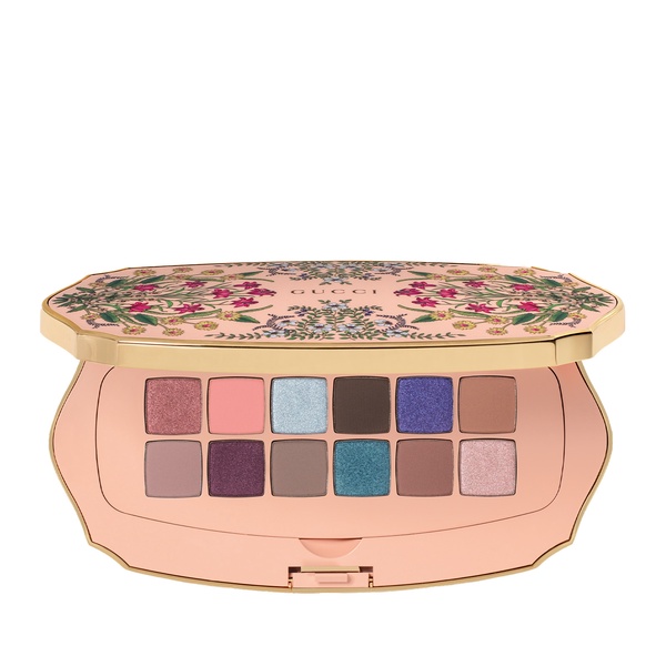 The Palette Beauté Des Yeux Gorgeous Flora is an eyeshadow makeup palette from Gucci Beauty that includes 12 gorgeous colours in satin, matte, and metallic finishes. It comes in a limited-edition package featuring the emblematic Gucci Beauty Flora Pattern.