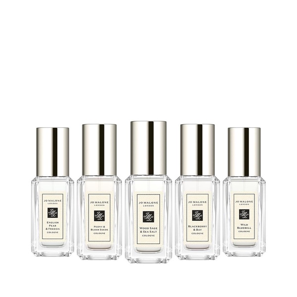 This set contains: English Pear & Freesia Cologne 9ml, Peony & Blush Suede Cologne 9ml, Wood Sage & Sea Salt Cologne 9ml, Blackberry & Bay Cologne 9ml, Wild Bluebell Cologne 9ml