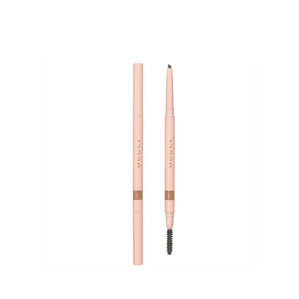 A light, modern and luxurious eyebrow pencil, the Gucci Beauty Stylo À Sourcils Waterproof is a dynamic tool for drawing and filling in the brows. Designed with an exceptionally fine and triangular lead, the pencil’s pointed nib shape delivers an ultra-precise yet fast and natural brow look. Dual-sided with a fine spoolie at the opposite end, colour can be effortlessly combed through the brows to style hair-by-hair and blend the product to your specifications. With Stylo À Sourcils Waterproof eyebrow pencil, brows appear naturally defined with a finish that emulates real-life brow hair. Apply this Gucci makeup to bare brows, outlining or filling the gaps to create a flawless look with staying power. Delivering a non-dry, weightless texture, Stylo À Sourcils Waterproof offers a natural finish. Easy to blend and comfortable to wear, the waterproof formula is smudge-proof and migrate-proof once applied. This eyebrow pencil contains zinc stearate to prevent the pencil from breaking, sumac wax to ensure a smooth application and colour delivery, and carnauba wax which acts as a physical barrier, making the formula waterproof. Housed within a sleek pale pink casing with gold trim, the dual-ended eyebrow pencil is finished with gold Gucci lettering. Stylo À Sourcils Waterproof is available in six shades, which suit all complexions and brow colours: from Miel, a light blond for those looking for very fair shades, to Noir, a deep black eyebrow pencil for a strong dark finish. In between shades include Blond, which is a medium blonde eyebrow pencil, and Châtain, a light brown, while Brun is a strong medium brown and Gris is a delicate grey.