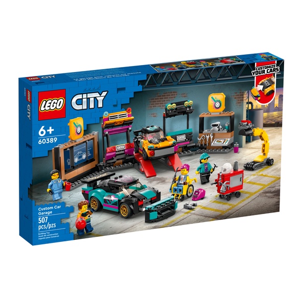 Customizing cars is child’s play with the LEGO® City Custom Car Garage (60389) playset, including a workshop with lots of cool functions and 2 customizable toy cars. Kids can choose from a range of engines and modular front and rear sections, with different headlights, bumpers and spoilers, to create their own designs. Includes 2 mechanic and 2 driver minifigures with fun accessories. This 6+ playset comes with an easy-to-follow pictorial building guide and the LEGO Builder app – an interactive building guide with intuitive zoom and rotate tools that enable kids to visualize models from all angles as they build.