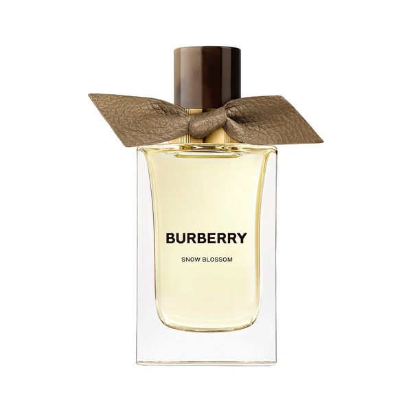 Extreme Botanicals Collection. A celebration of nature’s delicate strength. A celebration of the power of beauty over adversity, Extreme Botanicals pays homage to the simplicity of nature. Taking inspiration from flowers that thrive in some of the world’s most challenging environments, the fragrances transport the wearer beyond the here and now. With Snow Blossom, nature defies the expected. This unisex perfume is inspired by purple saxifrage, a flower that blazes against the snow that settles on its native volcanic rocks of the Binevenagh cliffs. The perfume fragrance Snow Blossom is an aromatic interpretation of snowflakes forming on delicate petals. This Burberry scent balances the green and powdery scent of violet with a base of white musk. Snow Blossom Eau de Parfum is presented in an elegant glass perfume bottle. The lid is made from the same material as the buttons on the Burberry trench coat. The leather knot is dressed in an elegant brown colour, inspired by the fashion house codes. The juice appears in pale and delicate green inspired by the landscapes of nature captured in the bottle. The outerpackaging sleeve is dressed up with gold leaves expressing the natural delicate strength of Extreme Botanicals.