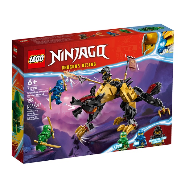 Featuring a fearsome monster toy and 3 minifigures, this Imperium Dragon Hunter Hound (71790) playset gives kids everything they need to enjoy endless fun-filled hours as they play out daring battles from the NINJAGO Dragons Rising TV series. This new-for-June 2023 Photac Beast has a posable head, tail and legs, as well as impressive claws and spikes. This LEGO NINJAGO playset comes with 3 minifigures: ninja warriors Lloyd and Jay, who are armed with 2 katanas each, and the Imperium Claw General, who has large sword and can ride on the back of the Photac Beast using a saddle.