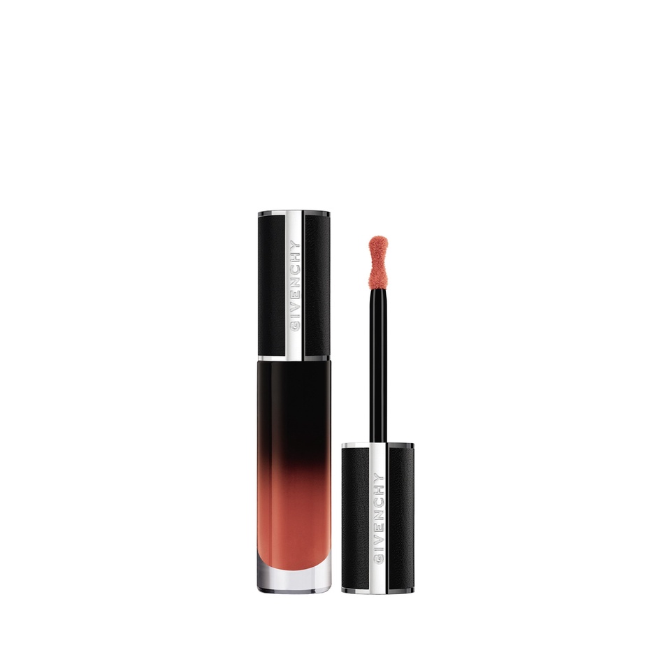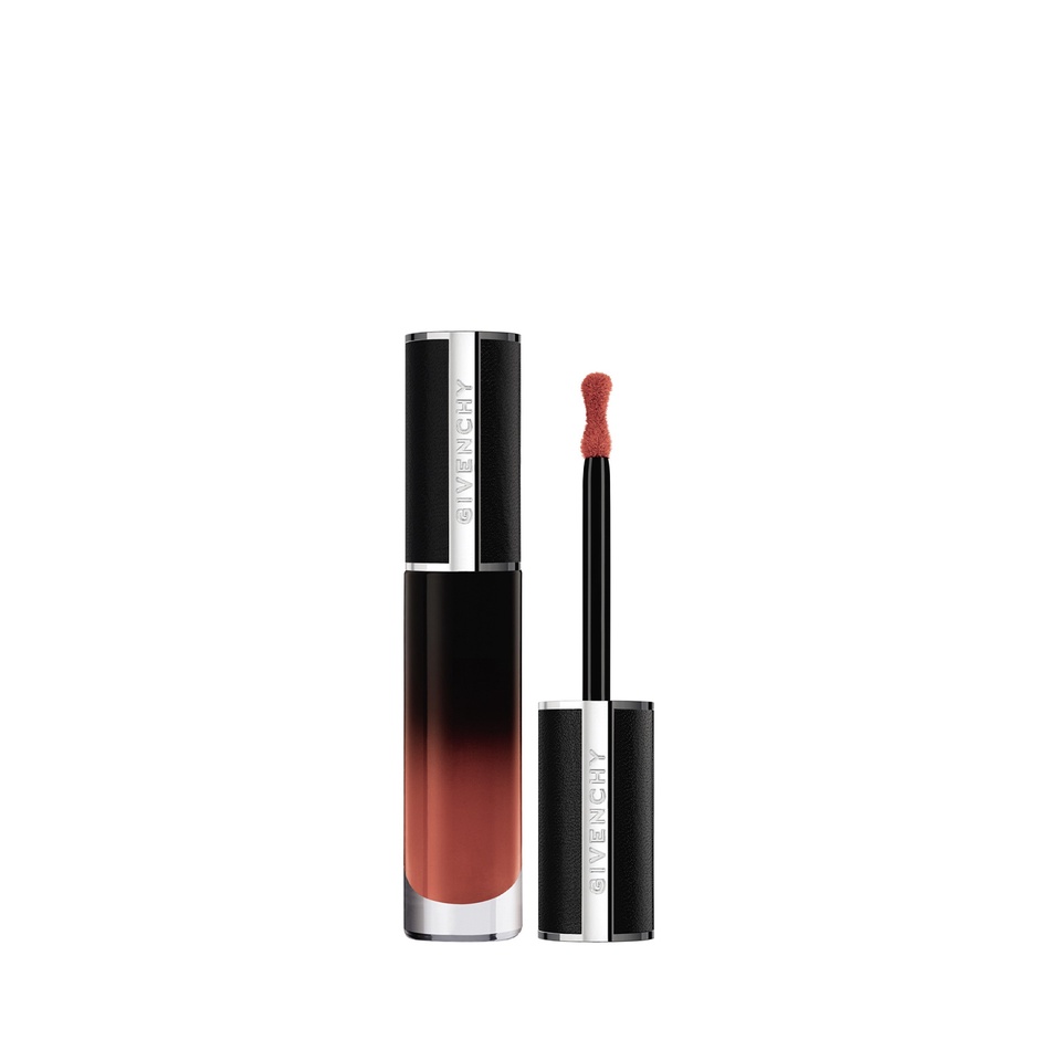 Discover the blurring effect of Givenchy Le Rouge Interdit Cream Velvet, the new cream matte lipstick with high-impact color. Offering 12-hour hydration***, the ultra-sensorial formula envelops your lips in 12-hour wear** and comfort*. The first Givenchy cream liquid lipstick to combine an imperceptibly light velvety film with incredible color payoff. The new Le Rouge Interdit Cream Velvet features a modern couture cap crafted from genuine black leather and a transparent glass bottle with a black gradient finish. Embellished with a silver 4G emblem, the case echoes the Givenchy logo inspired by couture House. Made using glass and 30% recycled plastic in its cap, the packaging is part of our approach to reducing our fossil virgin plastic consumption by 30% by 2025 (vs. 2017).