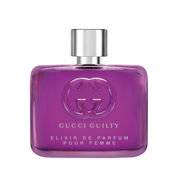 Extending a loving invitation to explore, create and connect with our truest selves, Gucci Guilty Pour Femme and Pour Homme fragrances launches with a campaign starring A$AP Rocky, Julia Garner and Elliot Page. An ode to self-acceptance, friendship and love in all its forms. An intense fragrance for an intense connection, Gucci Guilty Pour Femme Elixir de Parfum is an ambery floral woody fragrance for women. Guilty Elixirs are a daring assertion, a colourful extraversion: sensual and provocative scents that extend a loving invitation to accept who we are and let our authentic selves be seen while celebrating the countless iterations of love. Perfumers Quentin Bisch and Nathalie Cetto embued this Gucci fragrance with a sensual and mysterious base of vanilla absolute aroused by dark tonka beans, complemented by Gucci Guilty's signature of earthy patchouli, mandora, and floral and feminine wisteria. The fragrance for women is rounded off by a top note of citric bergamot which is beautifully balanced by rose, osmanthus and a sweet and soft violet accord. This Gucci scent is contained within an opulent purple glass bottle, a romantic reminder of feminine power and a reflection of the intense fragrance that lies within. The bottle of this beautiful fragrance unexpectedly plays with transparencies and features a debossed interlocking GG logo: precious ingredients concentrated in a flask.