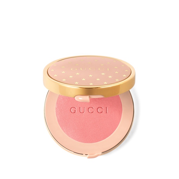 Gucci Beauty presents Gucci Blush De Beauté, the House’s first powder blush. Smooth, playful and multi-use, it can be applied on cheeks and eyes, becoming one with skin. Thanks to its formula, you can layer makeup effortlessly from a light flush to a daring look and any mood in between. The Formula Its adaptable formula of smooth powders and pigments is infused with emollient waxes to deliver buildable, long-lasting colour that intensifies seamlessly, layer after layer. The hydrating, ultra-thin powder cares for all skin types with an infusion of Shea Butter, Hyaluronic Acid and Black Rose Oil, blending pleasantly and easily for a second-skin feel. The Range Gucci Blush De Beauté comes in an array of six lively hues designed for a natural-looking glow. From supple pink to brazen berry, this range of makeup powder blush offers a series of flattering shades that energise your skin tone to its freshest expression and deliver a touch of colour to cheeks and eyes. The Packaging An object of desire that inspires. Embellished with pastel pink enamel and a playful star pattern, Gucci Blush De Beauté’s covetable compact is dressed in a vintage-inspired gold-toned design. Transforming on-the-go touch-ups into a special ritual, the compact reveals a tenderly embossed makeup powder with the emblematic Gucci logo within.