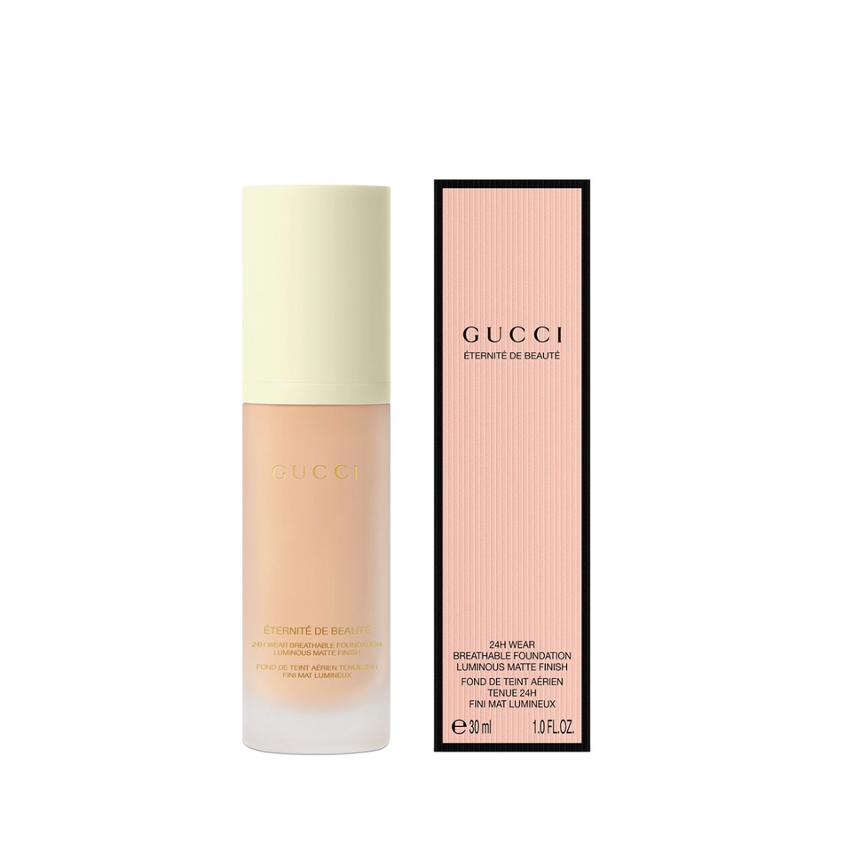 Gucci Éternité De Beauté foundation stays on the whole day, no matter how you play. This 24H, long-lasting Gucci foundation delivers a luminous-matte finish and a full coverage in one drop, while feeling breathable, weightless, and comfortable. Available in 40 shades. The formula: A combination of high-skin affinity powders and coated pigments with an ultra-performant polymer technology allows a 24-hour wear with zero transfer, while letting skin breathe.