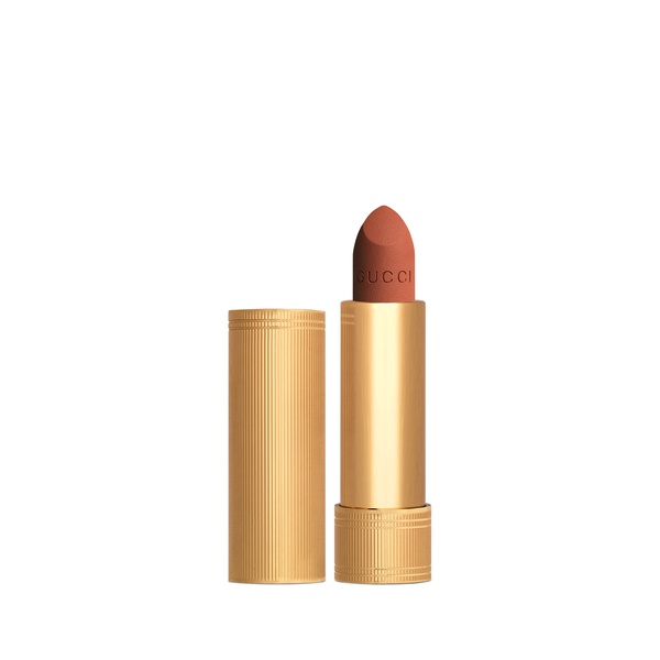 Rouge à Lèvres Mat is a collection of intense beautiful colours with a long-lasting matte finish. Specially formulated with rich pigments and gelling waxes, this lipstick delivers rich colour with a soft creamy feel. Formula and application: Rouge à Lèvres Mat Gucci lipstick delivers bright and rich lip colour with a soft and velvety feel. It has a silk-like texture enriched with oils and gelling waxes for a comfortable finish without drying out lips or colour smudging. Design and range: The collection includes rich nudes, oranges, pinks, reds, purples, and a shade of majestic green so you're sure to find your perfect shade. Rouge à Lèvres Mat’s metallic gold tube features thin vertical ribbed grooves. The elegantly precise packaging echoes an era when lipstick tubes were a display of decorative art.