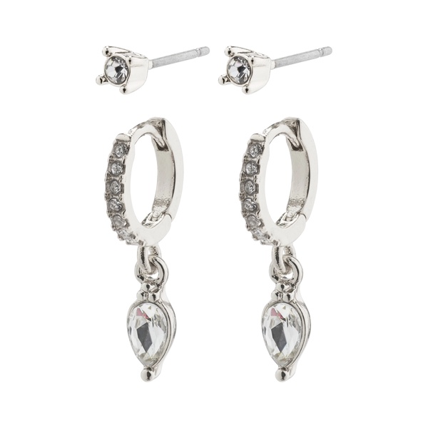 Pilgrim Elza Recycled Crystal Earrings 2-in-1 Set Silver Plated