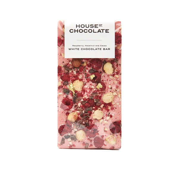 House Of Chocolate Freeze Dried Raspberry, Hazelnut & Cacao Nib White Chocolate Bar 85g