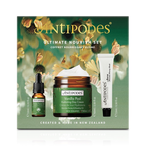 This set contains:Vanilla Pod Hydrating Day Cream 60ml: A creamy daytime moisturiser to replenish dry skin and target signs of early ageing. Divine Face Oil Rosehip & Avocado Oil 10ml: A soothing nutrient-rich face oil with nourishing rosehip, macadamia, and avocado oils.Mini Aura Manuka Honey Mask 15ml: A rich face mask, with world-famous New Zealand manuka honey, a natural humectant.