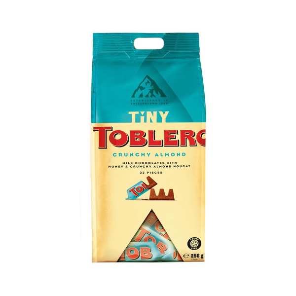 Toblerone Tiny Crunchy Almonds – The iconic triangular milk chocolate with honey and almond nougat enriched with crunchy caramelized almonds and a drop of salt. Perfect to share with your loved ones.