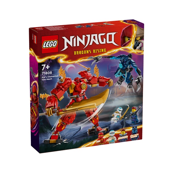Kids aged 7+ can recreate stories from season 2 of NINJAGO® Dragons Rising with the Kai’s Elemental Fire Mech (71808) ninja toy. The mech has posable arms and legs that can be tilted and twisted into dramatic battle stances, a cockpit for the ninja minifigure and a big golden sword accessory for role-play battles against the Wolf Mech.