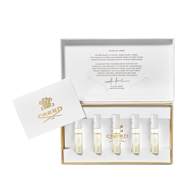 This set contains: Aventus For Her 1.7ml, Love In White 1.7ml, Spring Flower 1.7ml, Love In Black 1.7ml, Acqua Fiorentina 1.7ml