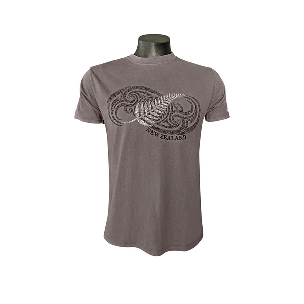 Prokiwi Adults T-Shirt Kowhaiwhai Fern Peat Grey