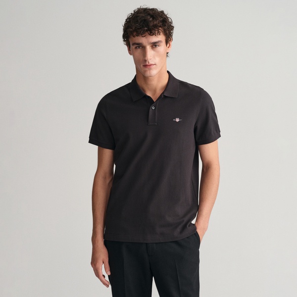 This polo shirt keeps it easy, simple, and classic. With a regular fit and a traditional flat knit collar, details include a two-button placket, small side slits, and GANT signature small-scale shield graphic embroidered at the chest.