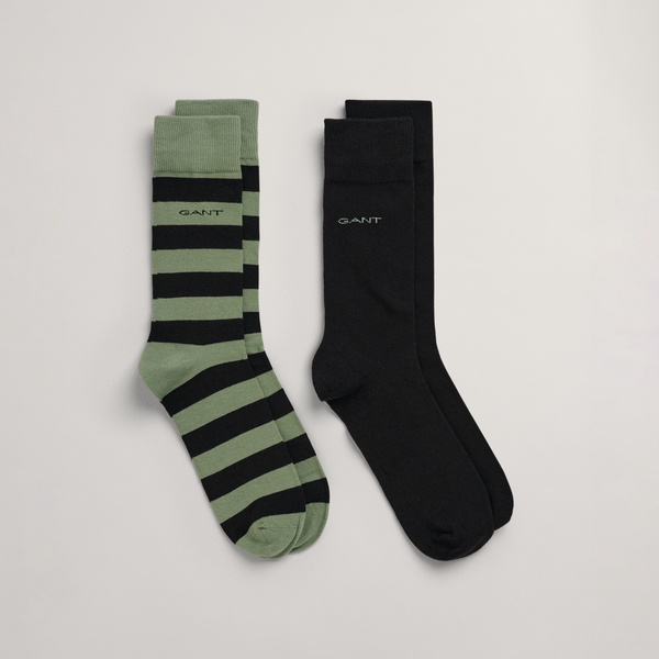 Add a sporty touch to your outfits with these 2-pack socks featuring a classic barstripe design alongside a classic solid colorway. Made of combed cotton, they are designed with a double welt hem and a GANT logo at the ankle.
