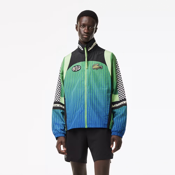 Break out of your comfort zone in this bright, bold track jacket. Simply timeless. Simply Lacoste. The model is 6'1"" and is wearing size M.• Short cut• High neck, zip closure• Print on back, collar and sleeves• Mesh inner pocket with snap closure• Crocodile on sleeve, badges on chest• Shell: Polyester (100%) / Lining: Polyester (100%)